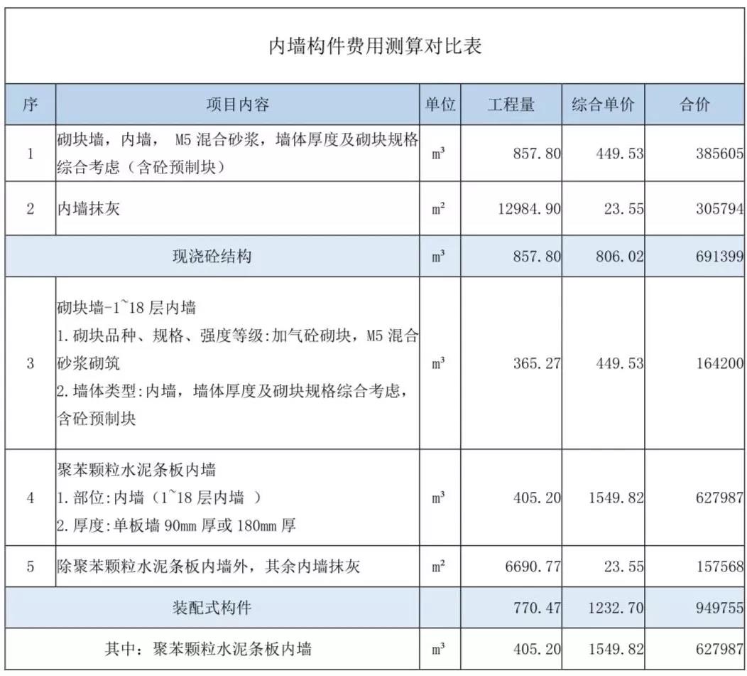 i預(yù)制內(nèi)墻單價比砌塊墻單價高;